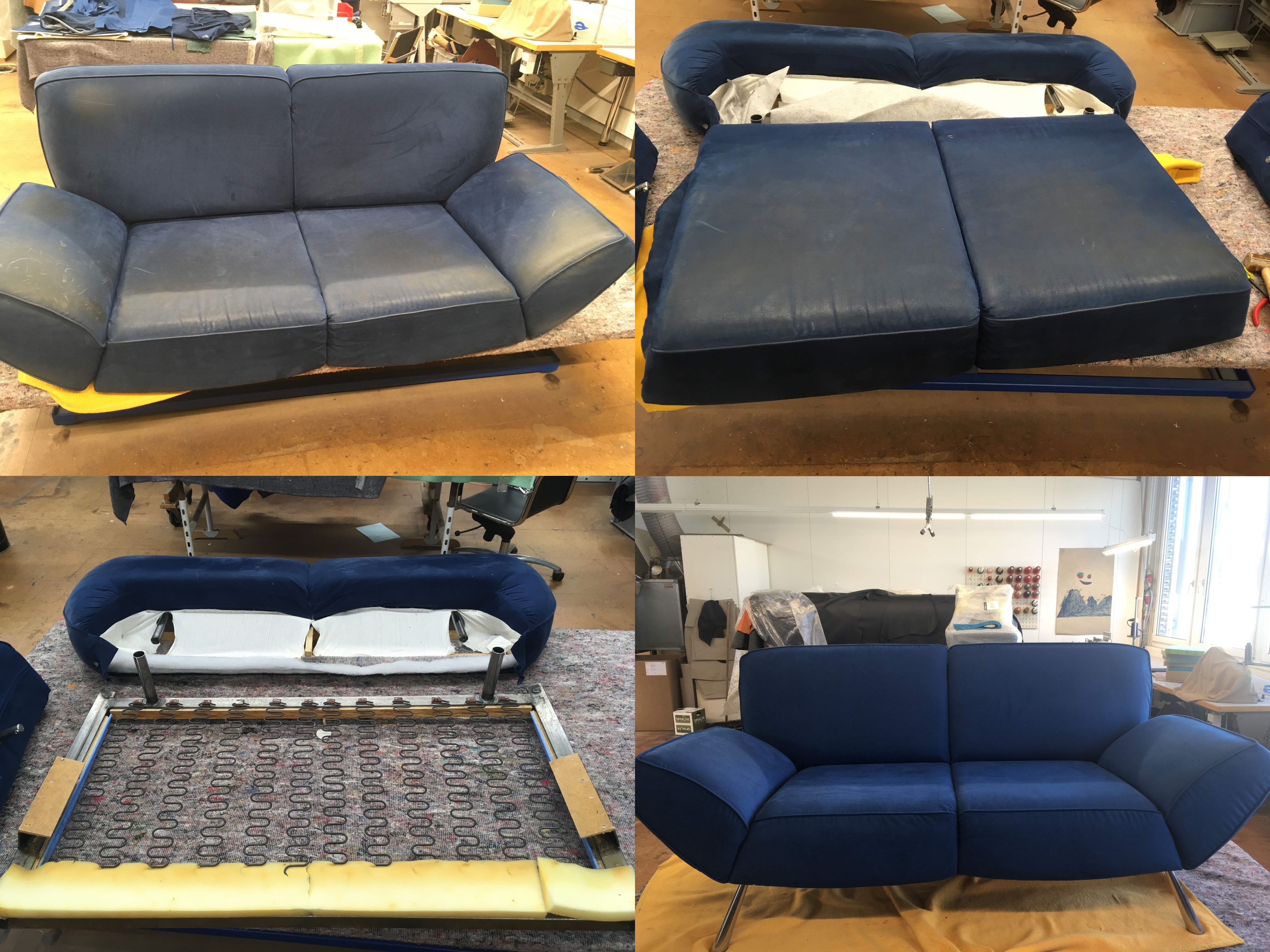 Wenn Ihr Möbel noch in Takt ist, aber einzelne Flächen beschädigt sind, können diese gegebenenfalls teilerneuert werden. Stoffe kann man wegen ihrer Vielfalt nicht so einfach ersetzen wie Leder, deswegen lassen wir uns gerne andere Ideen einfallen. Wenn Ihnen ihr treues Stück ans Herz gewachsen aber unansehnlich ist, dann lassen Sie sich von unseren kreativen Köpfen beraten.